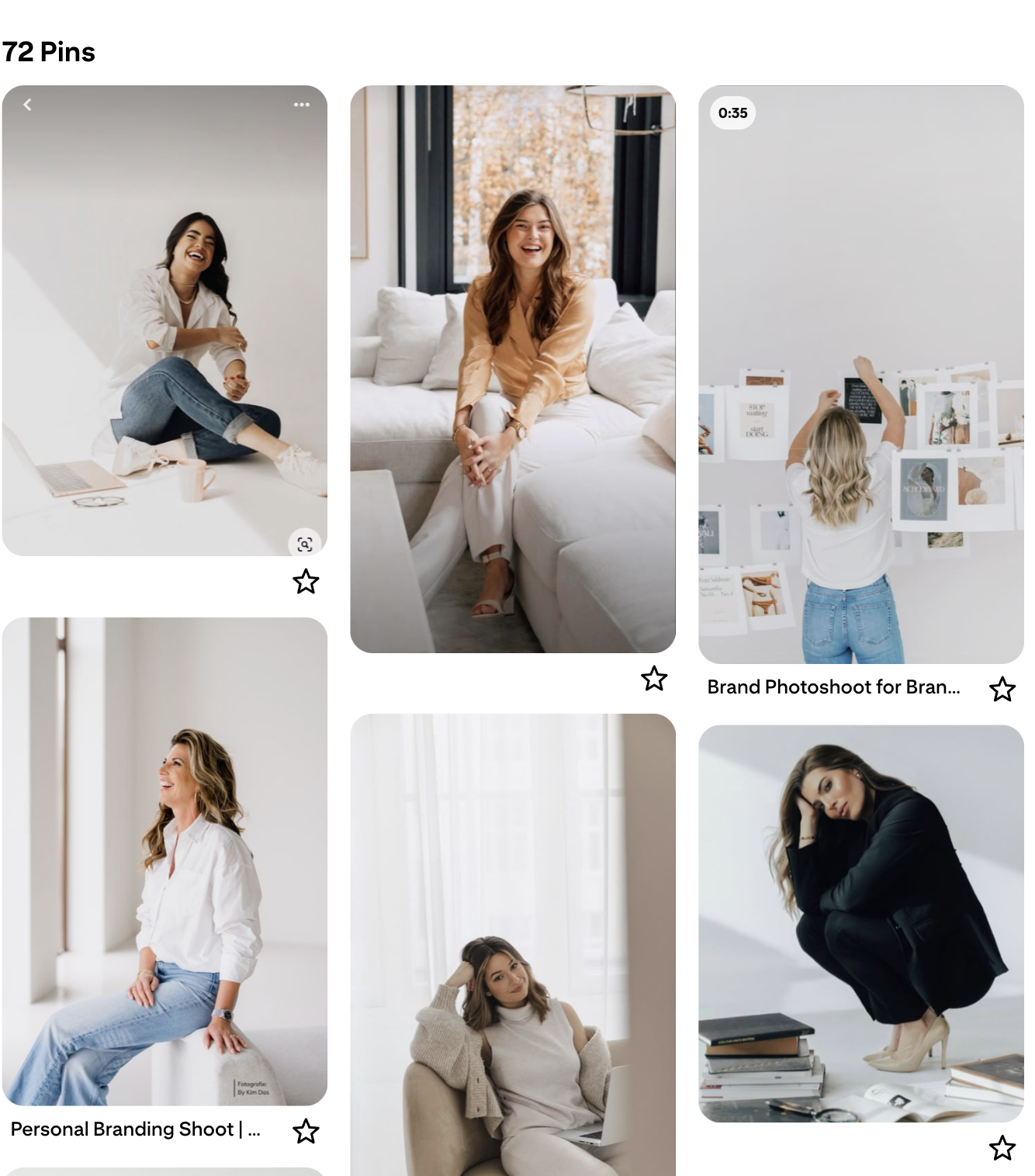 As part of my process, step 1 of every branding shoot is a strategy call where we look at a Pinterest board, like this one! It helps clients to have a visual to say yes/no to rather than trying to pull their ideal style out of thin air (especially for my clients who aren’t in visual/creative fields).